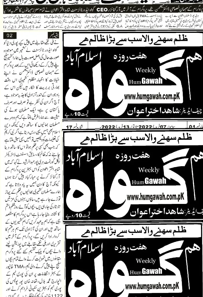GAWAH Advertisment Hosts “Izhar-e-Yakjehti-e-Kashmir” Event to Support Kashmir